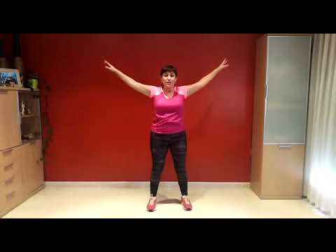Comença per un petit escalfament i, després, us ensenya una coreografia amb una música molt divertida.